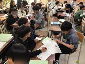 協力してプリントの問題に取り組んでいます