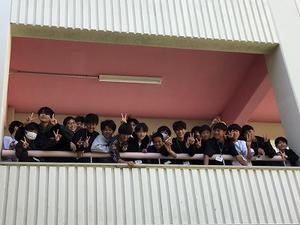 2階の渡り廊下に2年生が集結