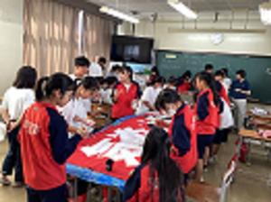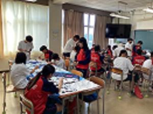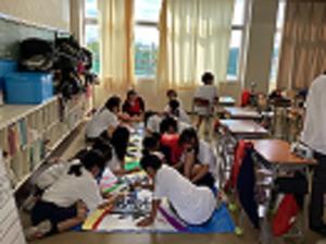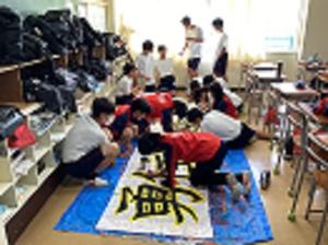 応援旗作成中 どのクラスもとても素晴らしい応援旗ができあがることでしょう。楽しみです。