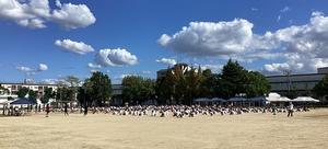 全体練習のソーラン 十二中伝統の全校生徒のソーランは迫力があります。