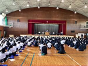 立候補者のみなさんは全校生徒の前で演説を行いました。
