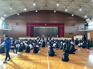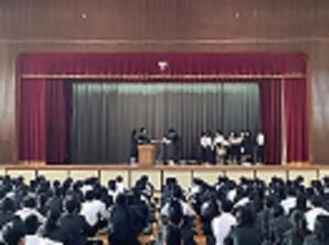 生徒会執行部が中心となり、全校朝礼が行われました。