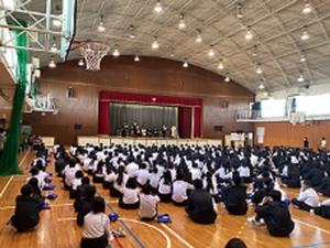朗読劇団「こえのぬくもり」と「天然デンネンズ」に来校いただき、人権講演会が行われました。