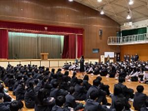 4/7(火)入学式 新入生143人を迎え、本日4/8(水)全学年が集まり始業式を行いました。