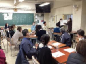 学び合おう!「一人ひとりを大切に」を主題に、第十三中学校校区(第十三中学校・大池小学校・刀根山小学校・本町こども園・とねやまこども園)の先生方などが参集し校区人権を行いました。目的、内容は人権教育を学びあう場として、具体的な実践の交流や校区の子どもの姿を通し、第十三中、大池小、刀根山小の実践発表及び意見交流会を行いました。実践発表の先生は、それぞれの集団の取組みや子どもたちの様子を通じて、子どもたちが獲得出来た力やこれから付けたい力など様々なお話をしていただきました。また意見交流では、多様な視点から集団をどうつくっていくかなど、どのグループも活発に交流されていました。