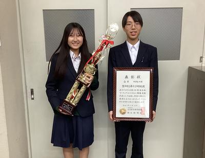 本日吹奏楽部の部長、副部長が全国大会の報告に来てくれました。