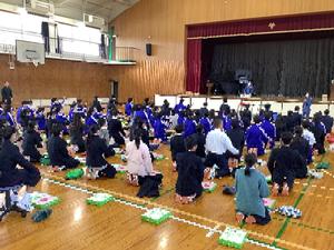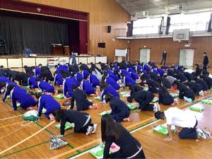 心肺蘇生の方法等を指示に従い、個々に与えられた機械を使いながら一生懸命練習していました。