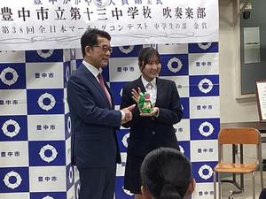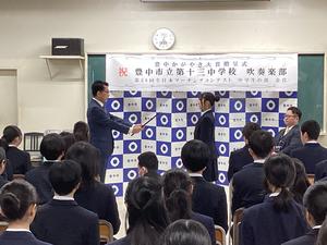 1月13日火曜日 吹奏楽部 豊中市かがやき大賞を受賞