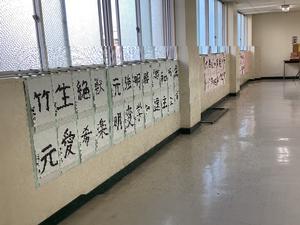 1年生の廊下に習字で作成した「今年の目標」を「漢字ひと文字」で書いたものが掲示されています。皆さんの書いた字はとても堂々としており、今年1年の目標がしっかりと伝わってきました。