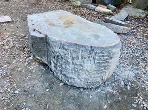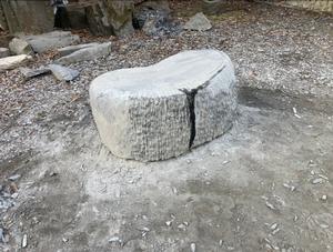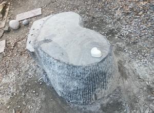 冨長氏が石を少しずつ削り、ハートの形に近づいていきます。