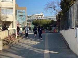 登校風景とheartstone。冨長氏が放課後に、みなさんが磨く前段階までの作業をされています。