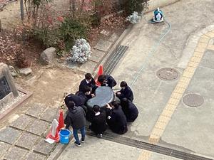 2月16日(月)3年生の各クラスが石磨きを開始しました。会話しながら、また黙々と様々な姿で石を磨いていました。