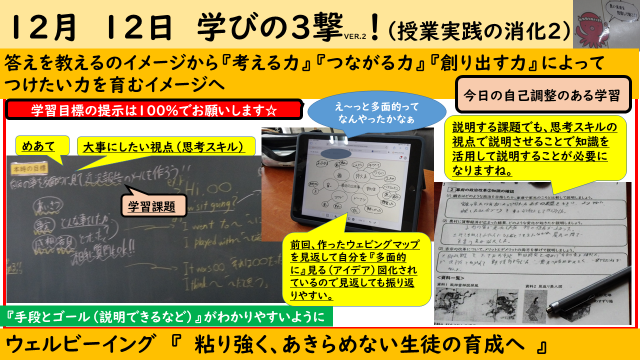 今日も本校の授業改善が進んでいます。自己調整のある学習スタイルのもとで