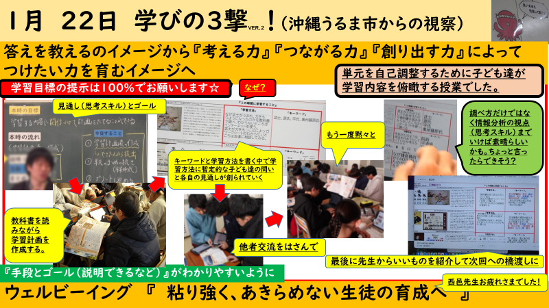去る1月22日に沖縄県うるま市からの授業視察がありました。