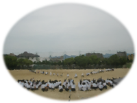 今日は各学年体育大会に向けて応援パフォーマンスのリハーサルを行っていました。待機場所から入場し、各クラスの応援パフォーマンスの隊形位置、退場の流れの確認を行っていました。応援パフォーマンスをつくりあげていく中で、お互いの頑張りを認め合いクラスのつながりを深めていってください。体育大会本番を楽しみにしています。各クラスの持ち時間は1年生が1分、2年生が1分30秒、3年生が2分です。