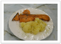 先ほど校長室に1年生の生徒が、調理実習で作った「鮭のムニエル」「粉ふきいも」をお皿に盛っておすそ分けとしてもってきてくれました。早速いただきました。鮭の焼き加減やポテトの粉のふかせ加減も抜群でした。おいしくいただきました。ありがとう。