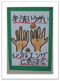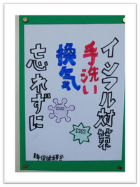 最近豊中市内でも本校を含め、インフルエンザに伴う学級閉鎖となる学校が増えてきています。そこで保健委員会がインフルエンザの予防意識を高めるために、ポスターを作成してくれました。各学年の廊下に掲示されていますので、意識してみてみましょう。