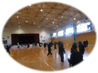 3年生が球技大会を行っています。体育館では女子がソフトボールを使ってドッジボールクラス対抗戦を行っています。時間とともにボールが増えていき最終3個のボールが飛び交い、目の回るような状況のなか熱戦を繰り広げています。一方運動場では青空のもと男子がハンドボールのクラス対抗戦をおこなっています。寒風も吹き飛ばすほどの熱戦を繰り広げています。進路選択に向け懸命に取り組んでいる中、みんなで楽しみリフレッシュしてください。