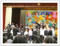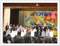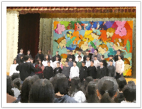 本校の合言葉は「人とのつながり大切に笑顔の花を咲かせよう」です。合唱は決して一人ではできません。人とつながり声を合わせ、心を合わせ互いに支え合うことで初めて美しいハーモニーが生まれてきます。それぞれの合唱では各クラス、全体のつながりが感じられる素晴らしいハーモニーでした。聴く側の心にも笑顔の花が咲きました。