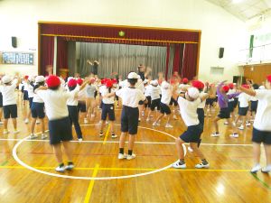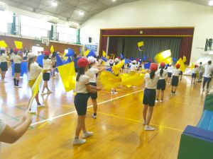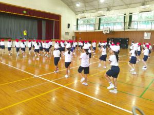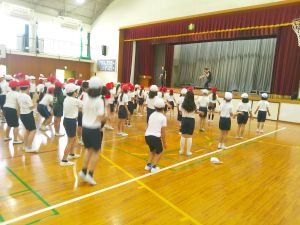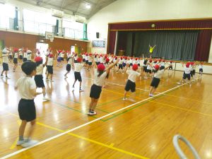 今日から運動会練習が始まりました。体育館にクーラーがついたので快適に練習できます。