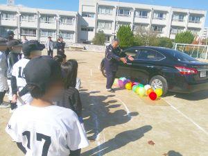 運動場を道路に見立ててスタートします。信号もしっかり見ましょう。