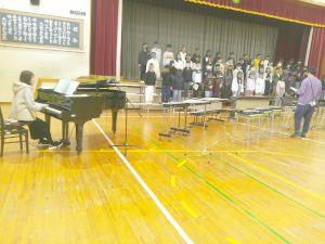 先週金曜日から音楽発表会の練習が体育館で始まりました。