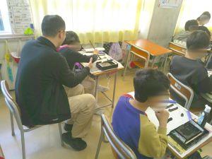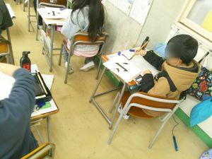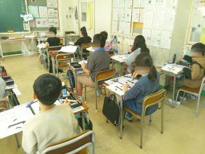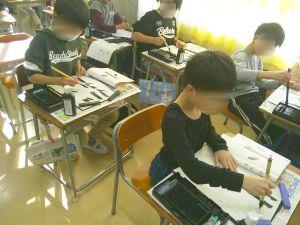 書写の時間です。3年生から毛筆が始まっています。