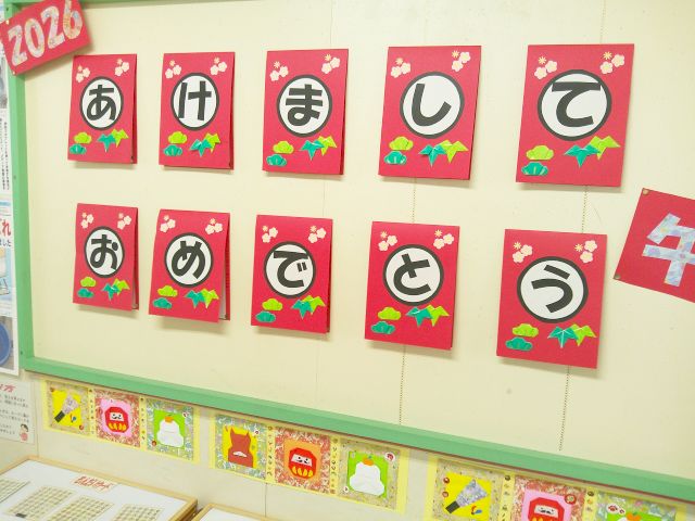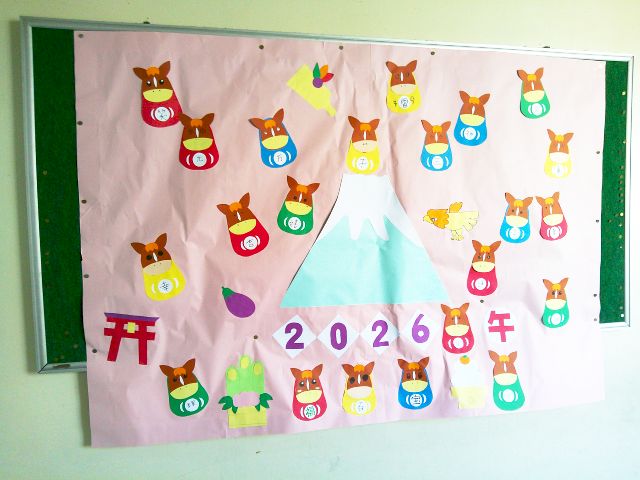 2026年がはじまりました。今年はうま年、玄関の掲示板にはかわいい馬がいっぱい!