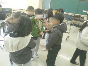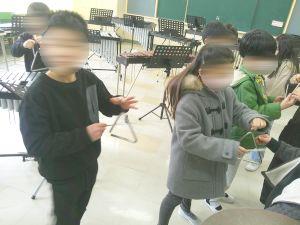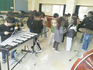 音楽室に子どもたちが来ていますが、音楽の勉強ではありません。