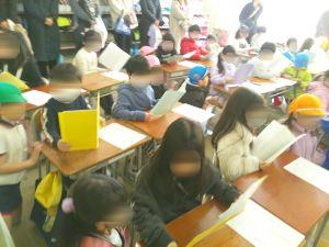 教室に行って1年生は学校のことを紹介する作文を読んだり・・・