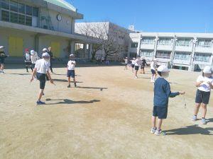マラソンも終わったので、5年生がなわとびをしていました。