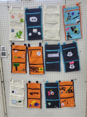 今年は6年生が家庭科の授業で制作したウォールポケットが全て体育館に展示されていました。