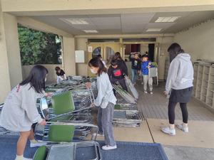 今日は低学年と6年下校後、5年生が残って明日の準備をしていました。