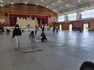 卒業式練習のために卒業式通りにきれいに椅子を並べた体育館を、一旦すべて空っぽにして、大勢で雑巾がけをしていました。