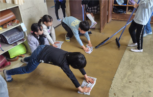 その後、全校での大掃除。低学年の教室には、環境整備委員のお母さん方も参加して一年の埃をきれいに掃除しました。