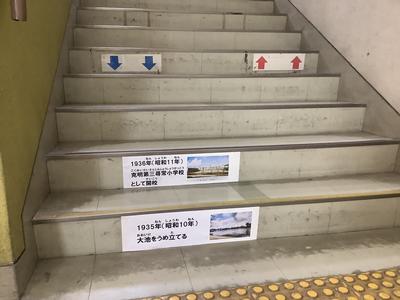 創立90周年ということで、90段(+2段)の階段をつかって大池小学校の歴史年表階段をつくっていきます。
