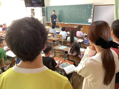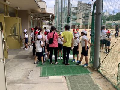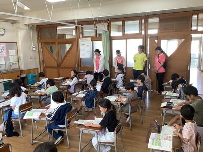 本日は、大池校区にある神童幼稚園の先生方が、幼稚園の運動会の会場下見もかねて、本校の授業や子どもたちの様子を見に来てくださいました。