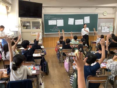 先月9月16日(火)より大学3年の教育実習生を受け入れています。本日は、実習生の算数の研究授業があり、大学の先生も来校されました。