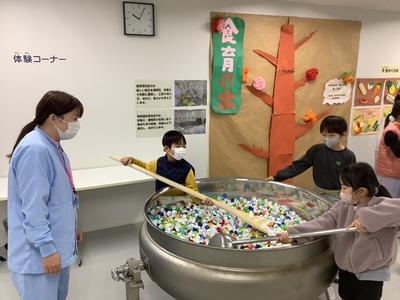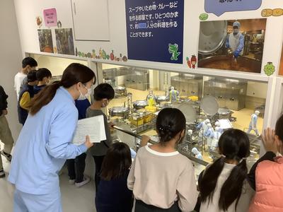 普段はなかなか見ることができない給食を作っている様子を見たり、体験したり、解説等していただきました。子どもたちは、学校給食センターで働く人びとが工夫や努力をして自分たちの毎日の給食を支えていることに気づくことができました。また、給食は「安全・安心!」「栄養!」「おいしさ!」の3つのことに気をつけ、工夫して作られていることがわかり、明日の給食がますます楽しみな様子でした!