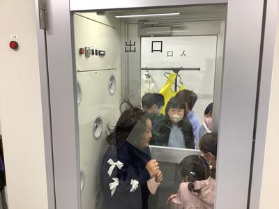 子どもたちの一番人気は、「エアーシャワー」の体験コーナーでした(笑)