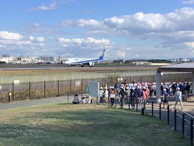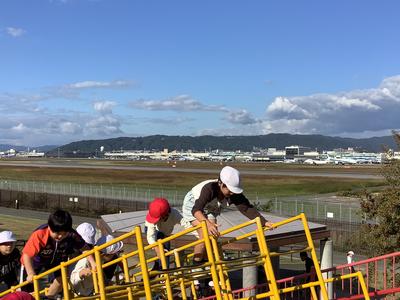 最後に伊丹スカイパークで飛行機を見ながら遊びました。本日は、伊丹市側から大阪国際空港を見たのですが、「空港のあるまち・豊中」を実感してくれたのではないかと思います。