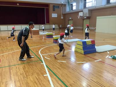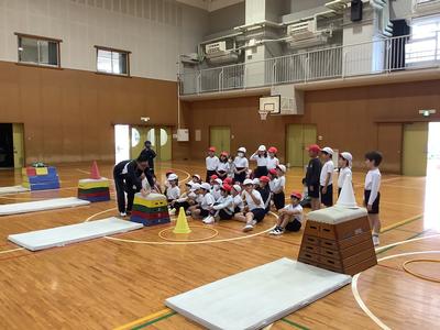 中学校の専門性を生かした指導を取り入れ跳び箱の授業を行っていただきました。子どもたちは中学校の先生の授業が新鮮だったのと、温かい雰囲気でわかる・できる授業展開だったので、みんな前のめりで跳び箱に取り組むことができていました。授業後に子どもたちに感想を聞くと「楽しかったー!」と言っていました。小学校の体力向上への取組みにも参考になりました。
