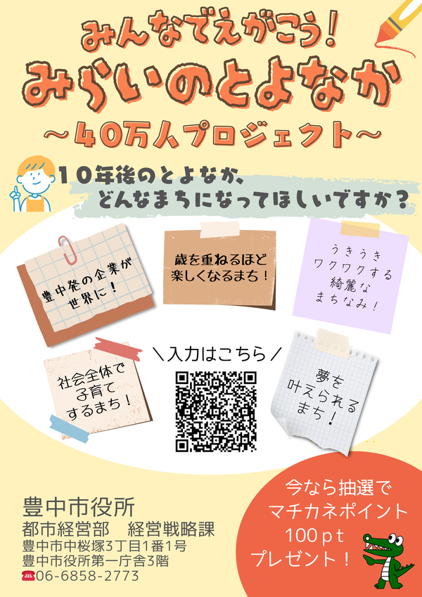 【意見募集】みんなでえがこう!みらいのとよなか~40万人プロジェクト~ 豊中市(外部サイトへリンク)