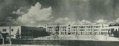 ☟昭和11年(1936年)開校当時の校舎全景(大阪府内初の鉄筋コンクリート造3階建て校舎)【89年前】