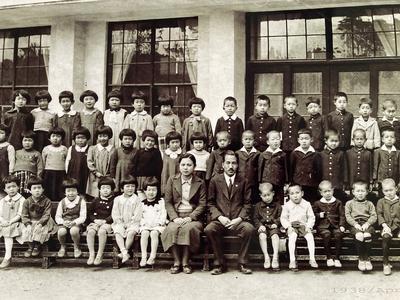そして、昭和13年(1938年)の入学記念写真もあることに気付きました。開校当時は、克明第三尋常小学校でした。