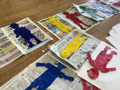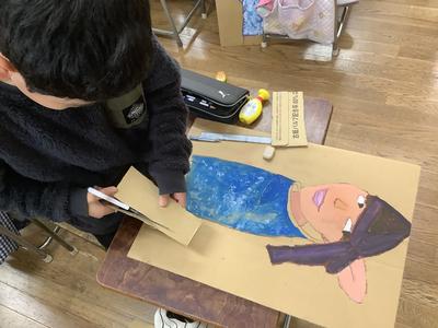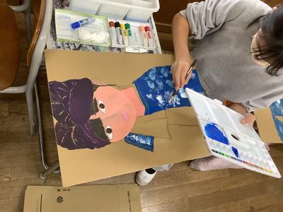 4年生の図工の時間。運動会で演技した沖縄の伝統芸能エイサーを作品にしています。「エイサー」を踊っている姿に腕をつけ、手にパーランクー(片面張りの手持ち太鼓)とバチを持たせ立体的な動きのある作品になるようです。仕上がりが楽しみですね! 4年生の作品は、教室前のワークスペースにて掲示しますので、個人懇談の際にぜひご鑑賞ください。