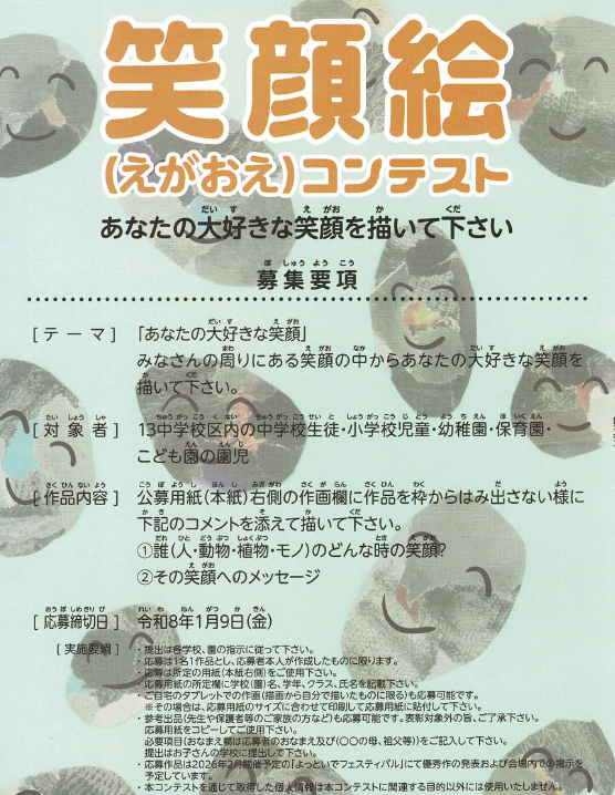 【第十三中校区地域教育協議会】「笑顔絵コンテスト~あなたの大好きな笑顔を描いて下さい~」募集【応募締め切り日:2026年1月9日(金)】
