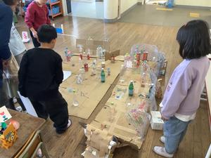 1年生がわくわくしながら教室に入ってきました。教室内やワークスペースはおもちゃごとにブースが分かれていて、1年生はグループごとに各ブースを回りました。2年生は1年生に優しく遊び方やルールを説明することができていました。