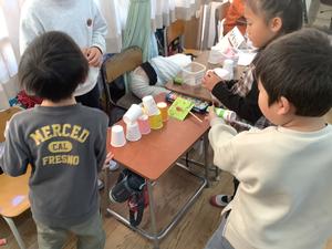 「おもちゃまつり」が始まると、すぐに教室には楽しそうな子どもたちの声でいっぱいになりました。学年を超えた交流が生まれ、心あたたまる時間となりました。