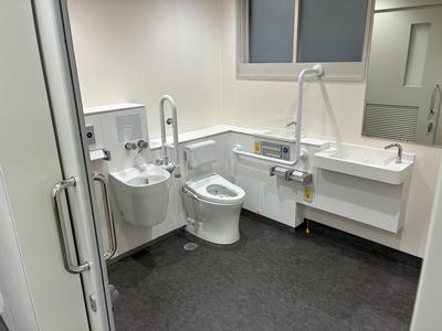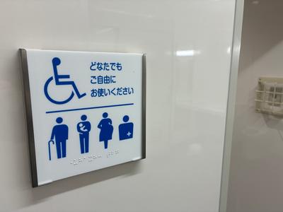 ☝多目的トイレは入って正面にあり、広くて使いやすい!